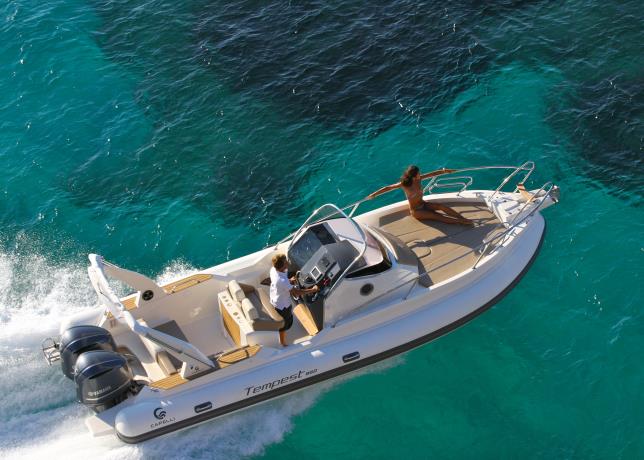 Een CAPELLI TEMPEST 850WA.Uitgerust met GPS kaartplotter en marifoon.