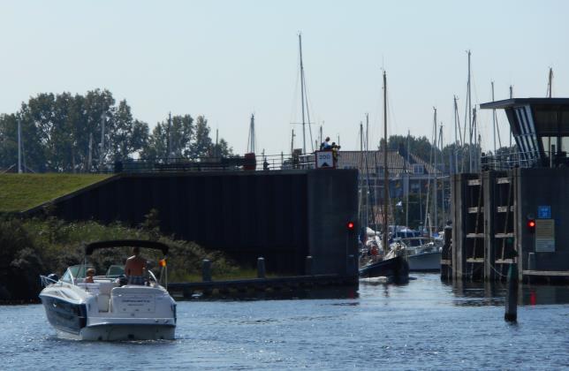 - Bij het oproepen van een sluiswachter of havenmeester.